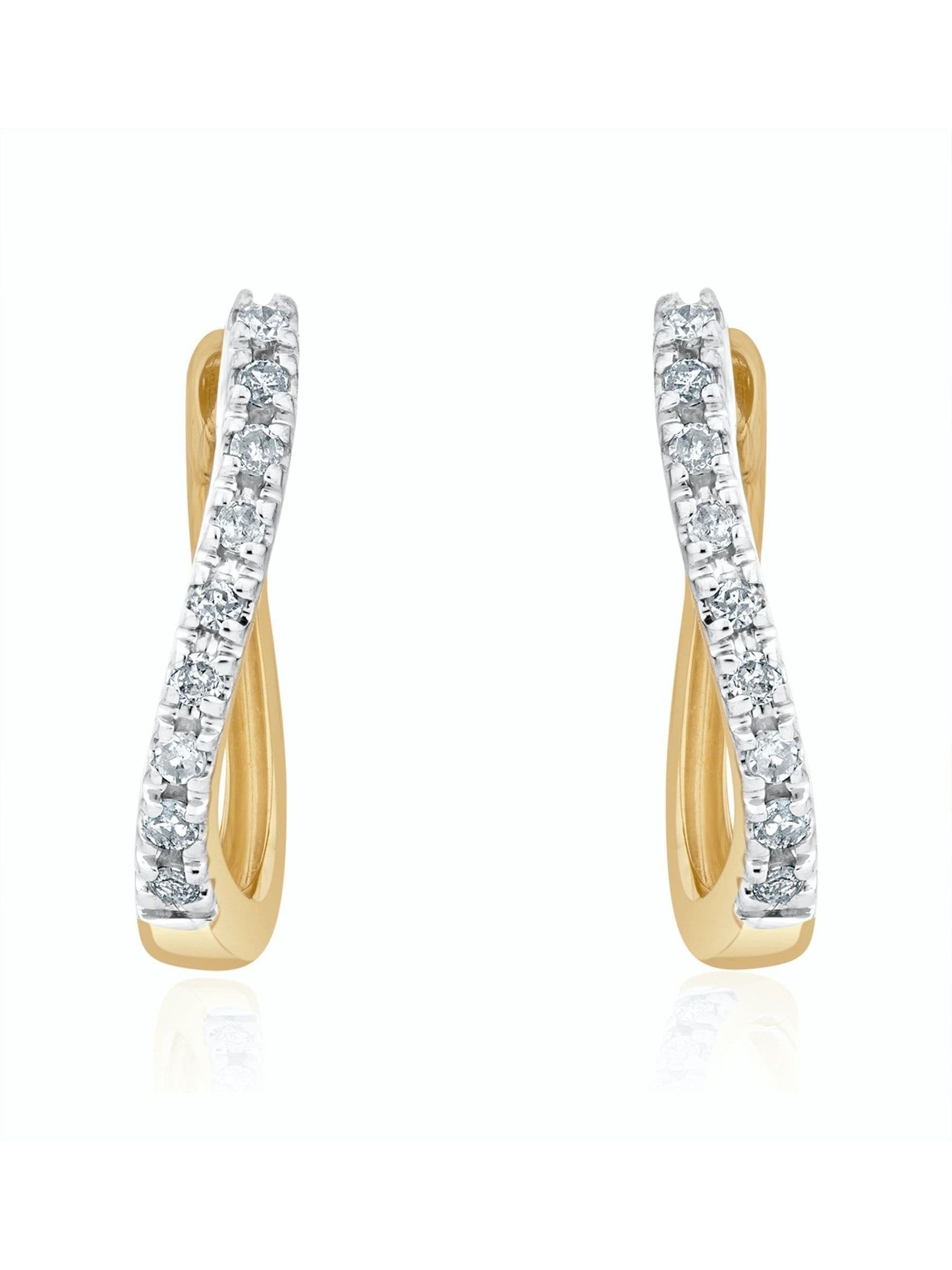 These diamond-encrusted hoop earrings are simple in design and feature a collection of round cut Premium Quality Diamonds weighing a total of 0.11CT.