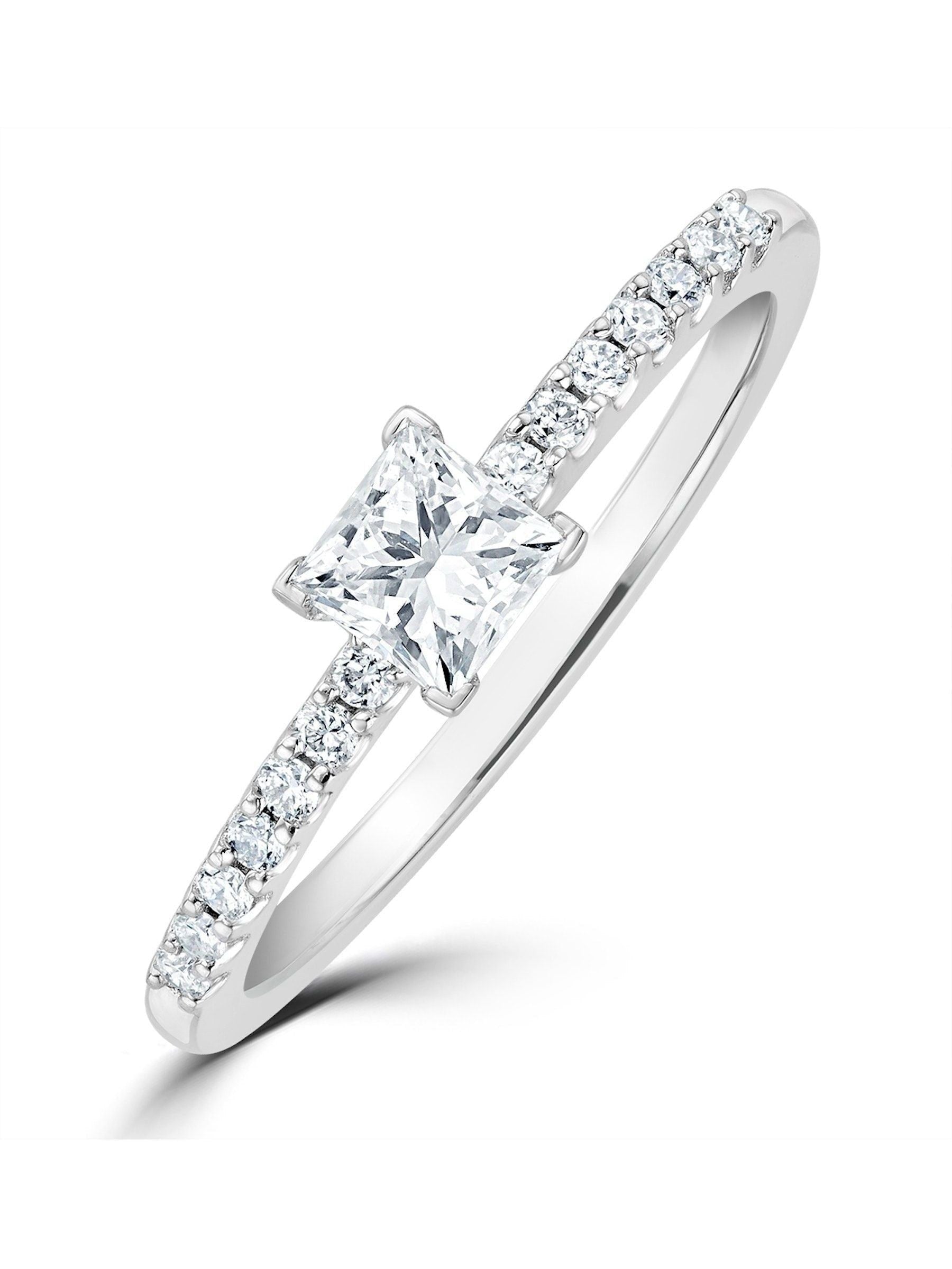 Sophisticated and radiant, this princess-cut diamond ring features lab-grown diamonds that create exquisite sparkle. The polished setting of white gold looks and feels luxurious on the hand.