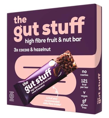 The Gut Stuff Cocoa Hazelnut High Fibre Fruit Nut bars 3x35g