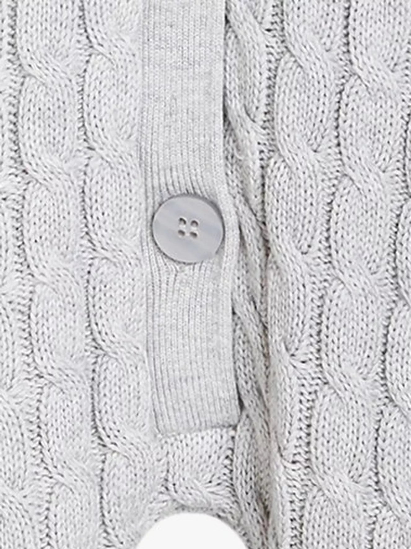 A perfect alternative to an unforgiving snowsuit. As this pram suit is knitted is moves with the babies, making it comfy and more versatile, with an easy to pop on zip to the front.