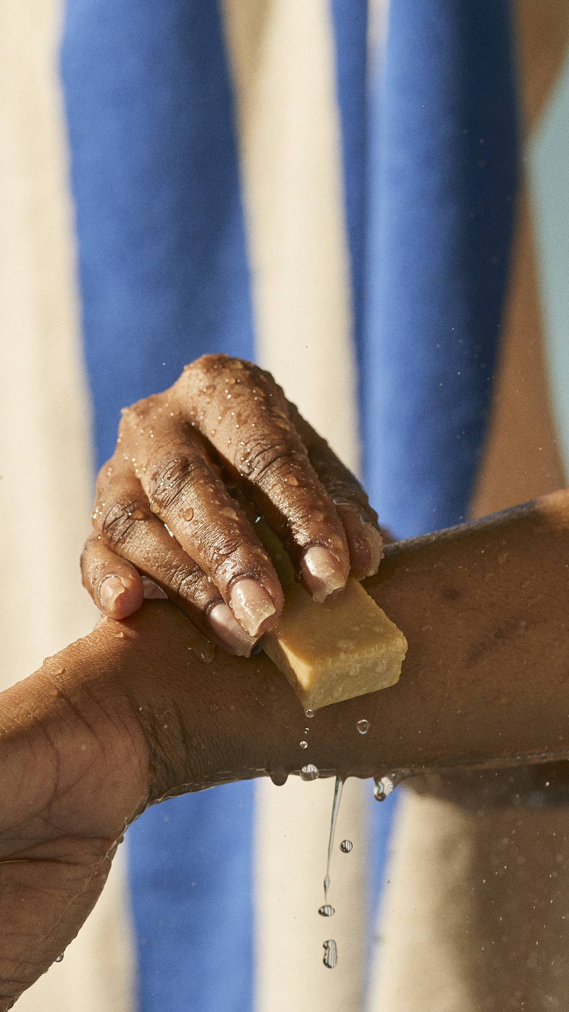 Break off one third of the bar and glide over wet skin in the bath or shower, then lightly pat yourself dry with a towel. You can also use this product on dry skin to top up every two hours. Pair with shade, shades, and a hat. Store out of direct sunlight. Learn more about protecting your skin and the environment with sensible sunscreen use here.