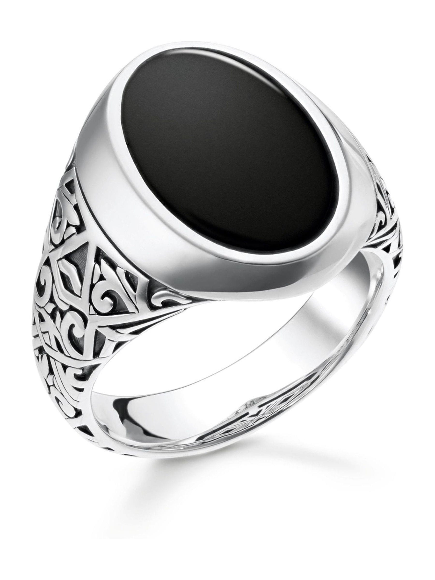 Ring - 925 Sterling silver, blackened - onyx - Personal lucky charm - Highest silversmithing art - Southwest-Native-American influence Energetic design: This signet ring becomes a powerful statement thanks to the flat onyx centre stone. Among other things, the high-quality genuine stone is said to strengthen self-confidence. The finest engraving lines and the unique tendril ornamentation of the iconic THOMAS SABO design language refine this extraordinary piece of jewellery down to the last detail.