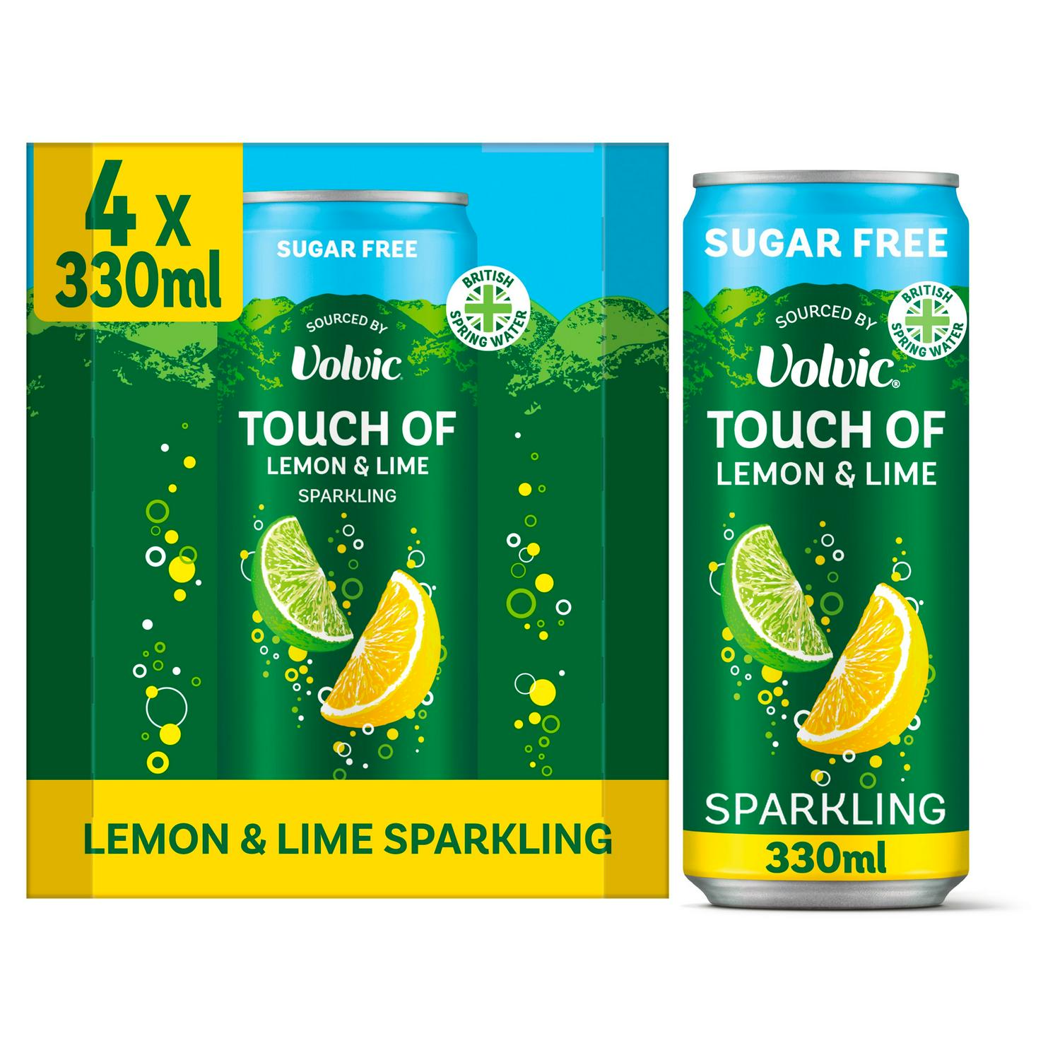 Touch of Lemon & Lime Sparkling Sugar Free Flavoured Water by Volvic 4x330ml