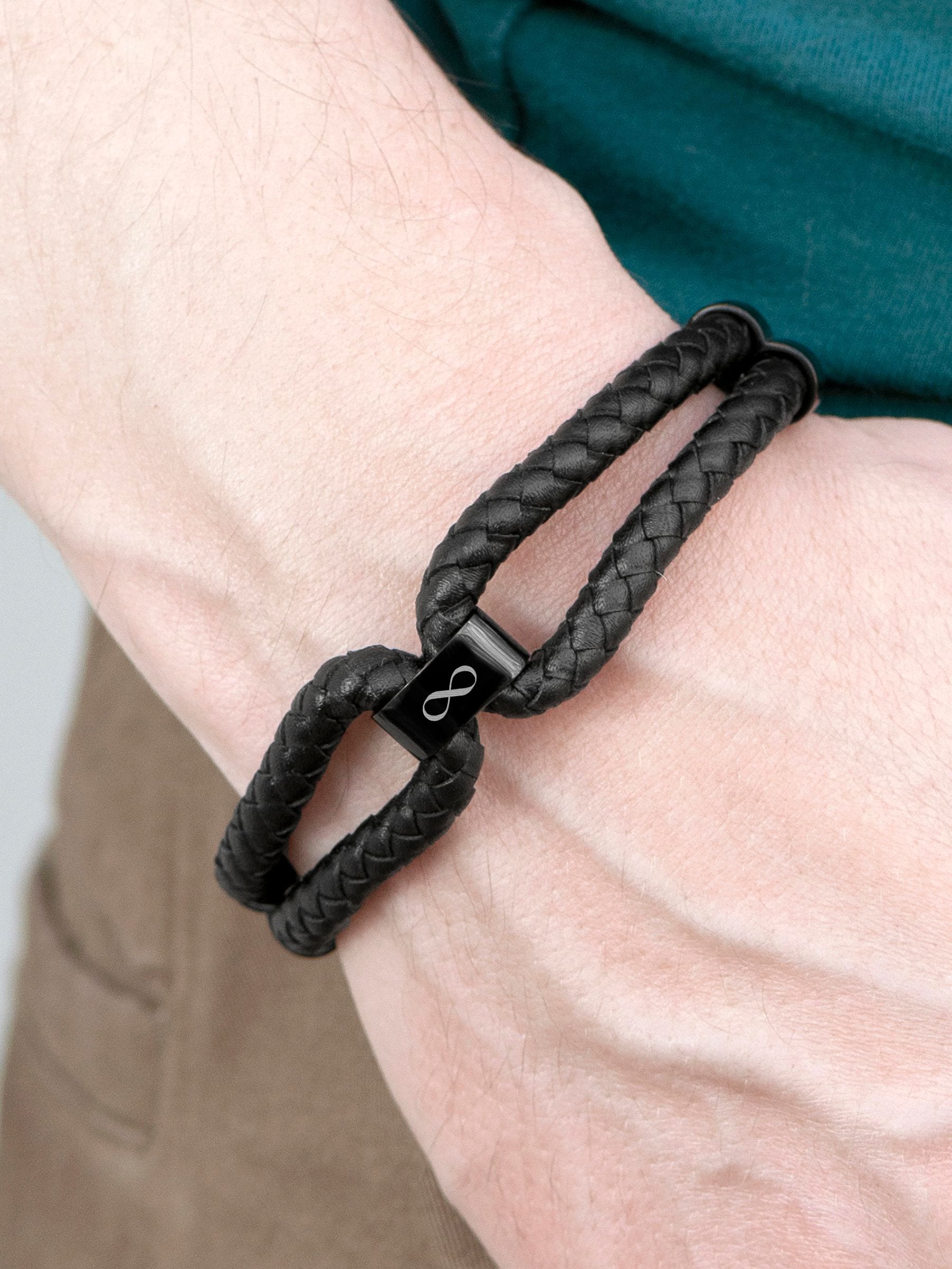 With an air of understated luxury, our sublime Personalised Men's Infinity Dual Leather Bracelet combines classic design with modern style. Be it a refined birthday gift, a cherished Christmas present, or a declaration of unwavering affection on Valentine's Day, this leather bracelet epitomises elegance and beauty. Its versatility means it looks great with both casual and formal outfits, rendering it an indispensable companion for any classy gentleman.