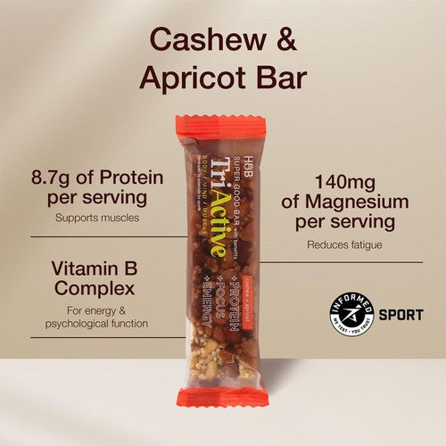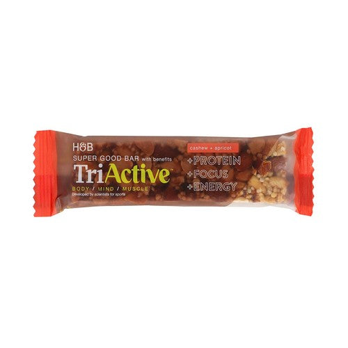 Packing 8.7g of protein and seven B vitamins, Tri Active Supergood Bar with Benefits Cashew Nuts and Apricot really is super good™. Crunchy and chewy, this nutty bar with cashews, peanuts, almonds and dried apricots has the added bonus of supporting muscle mass, growth and maintenance, and reducing fatigue.