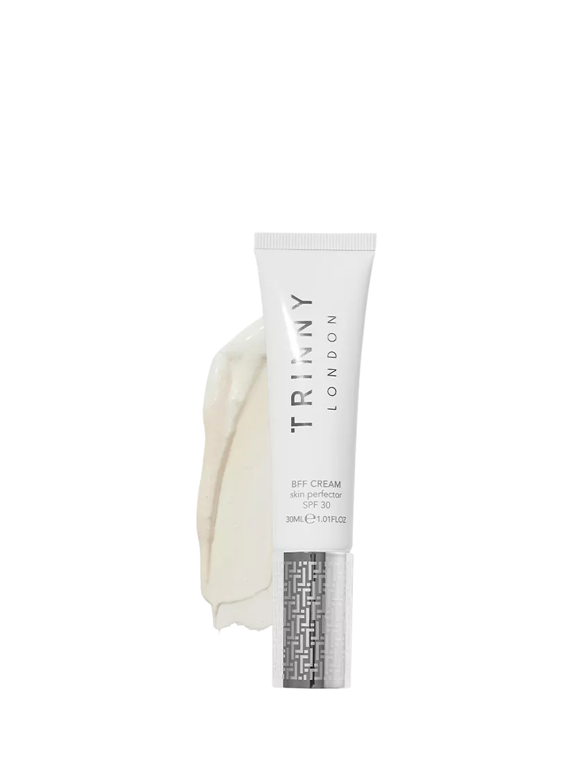 Unveiling Trinny London BFF SPF 30 Cream Skin Perfector: your ultimate glow-boosting base. This versatile cream provides light, barely-there coverage, perfect for a natural, radiant look.