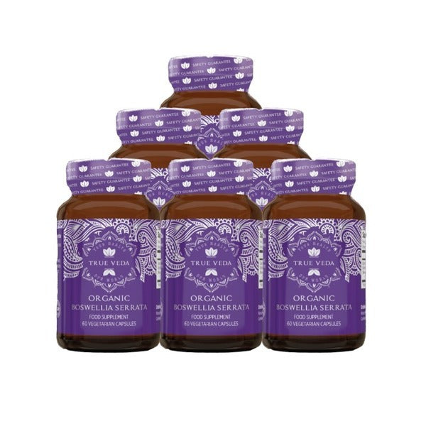 True Veda Organic Boswellia Serrata: Indian Frankincense. High 75% Boswellic Acids, a potent natural response to inflammation to ensure joint flexibility and keep your body active.