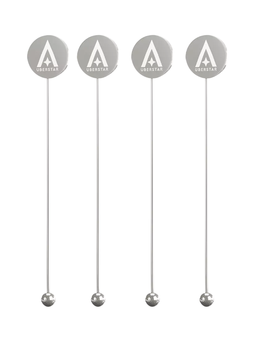 Four sleek and stylish stir sticks featuring a luxurious silver finish and made from high-quality stainless steel for long-lasting use.