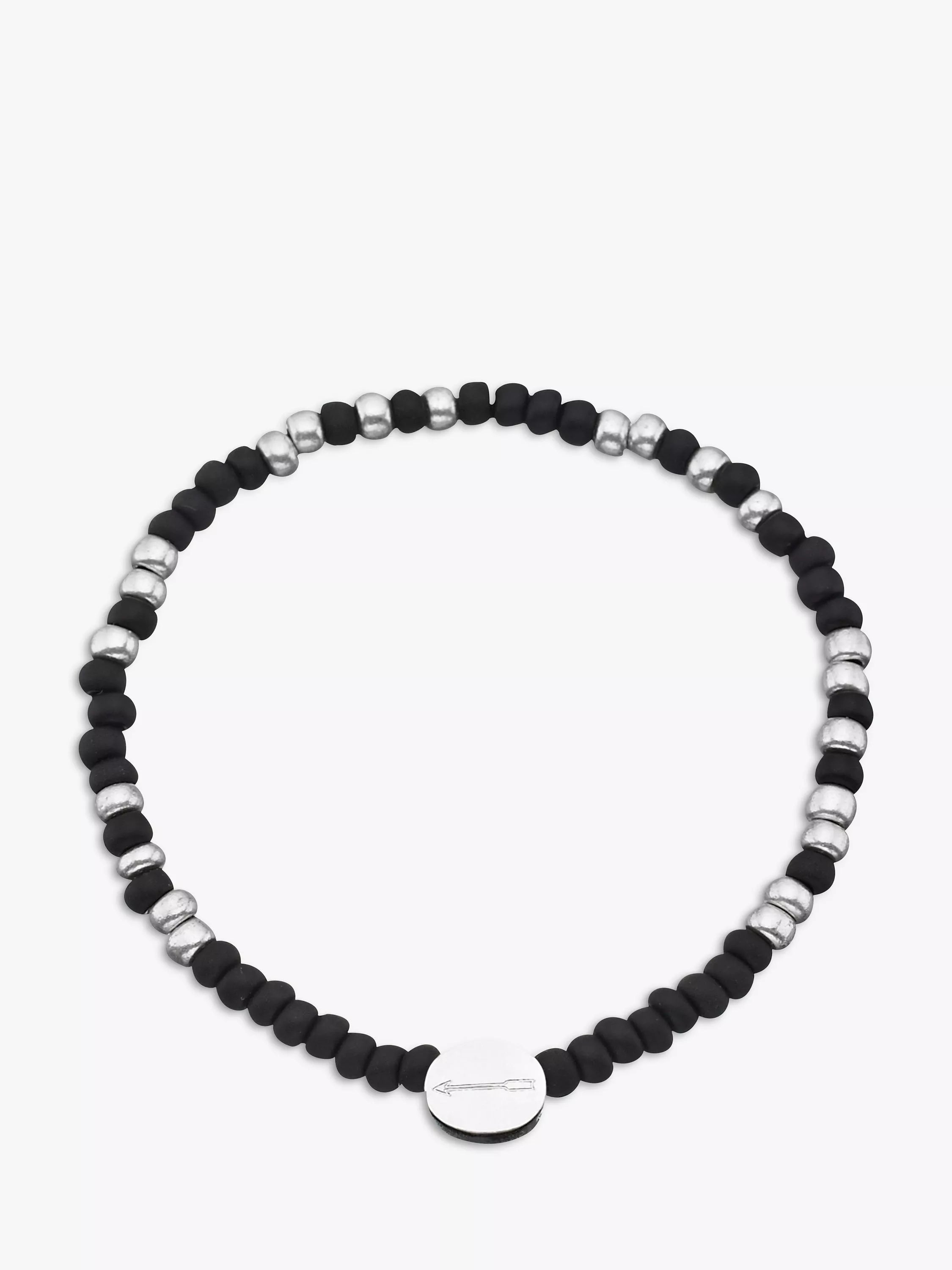 The silver beads in dots and dashes spell out the special message just for him. The elastic strung bracelet is the perfect everyday piece great worn alone or stacking with others. The bracelet reads Daddy from the arrow engraved on the sterling silver bead and comes with a card to decode the words.