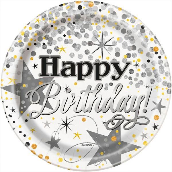 Unique Party Foil Glitter Birthday Party Plates (Pack of 8)
