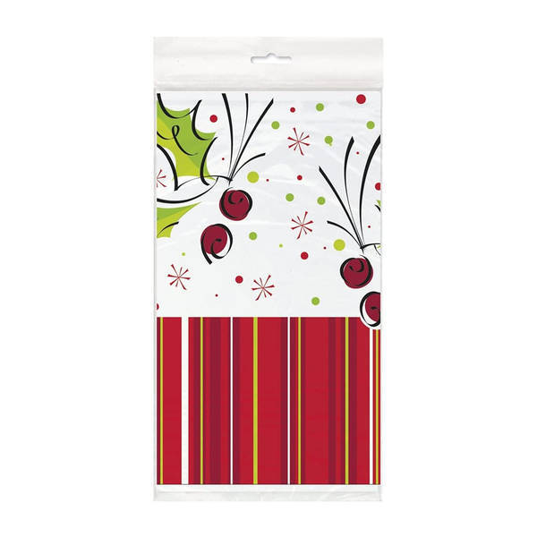 Unique Party Holly Pop Plastic Holiday Tablecloth