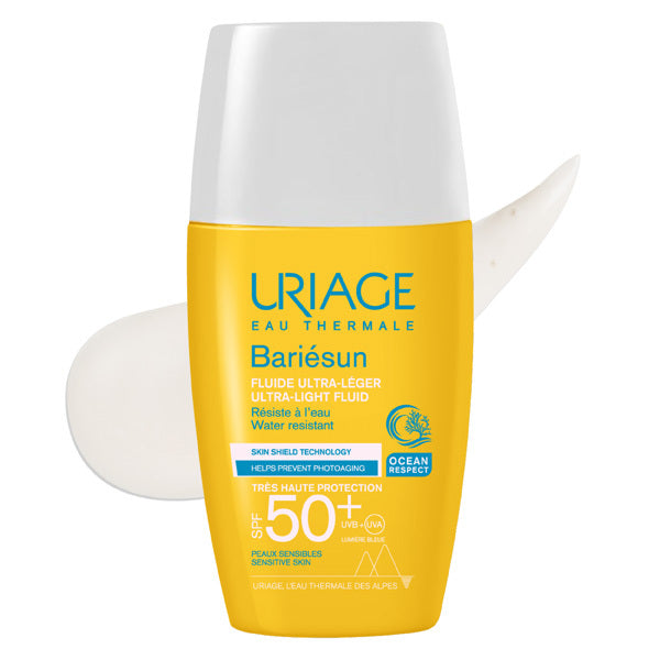 Specially developed for sensitive skin, this light and fragrance-free fluid provides very high protection against UVA and UVB rays and free radicals. Its ultra-fluid, water-resistant texture ensures fast penetration and a dry finish with no white film effect. Its pocket-size format makes it very handy to use whatever the occasion! Prevents PhotoAging Uriage Thermal Water helps fight against the negative effects of the sun. The skin barrier is thus reinforced and DNA is protected against deterioration by UV rays*. Protects Against UV Rays Its latest-generation filter complex provides high protection against UVA and UVB rays and free radicals. This fluid guarantees broad-spectrum UVB-UVA cover and very high tolerance. *Publication 2014: Joly F, Lefeuvre L. Journ Cosm Dermatol Scien Appl 2014; 4:99-106