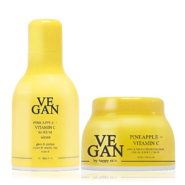 PINEAPPLE + VITAMIN C day & night moisturizer: Aqua, Aloe Barbadensis Leaf Juice, Glycerin, Coco-Caprylate/Caprate, Caprylic/Capric Triglyceride, Isoamyl Cocoate, Cetearyl Alcohol, Polyglyceryl-3 Dicitrate/Stearate, Prunus Amygdalus Dulcis Oil, Ananas Sativus Fruit Extract, Ascorbic Acid, Helianthus Annuus Seed Oil, OENOTHERA BIENNIS OIL, Daucus Carota Sativa Root Extract, Xanthan Gum, Potassium Sorbate, Sodium Benzoate, Dehydroacetic Acid,Benzyl Alcohol, Parfum, Citral, Cinamal, Hexyl Cinnamal, Benzyl Benzoate, Limonene, Linalool. PINEAPPLE + VITAMIN C serum Aqua, Aloe Barbadensis Leaf Juice, Glycerin, Sclerotium Gum, Ananas Sativus Fruit Extract, Ascorbic Acid, Daucus carota sativa root extract, Sodium Hyaluronate, Helianthus annuus seed oil, Xanthan Gum, Potassium Sorbate, Sodium Benzoate Dehydroacetic Acid, Benzyl alcohol, Parfum, Benzyl Benzoate, Cinamal, Hexyl Cinnamal, Limonene, Linalool."