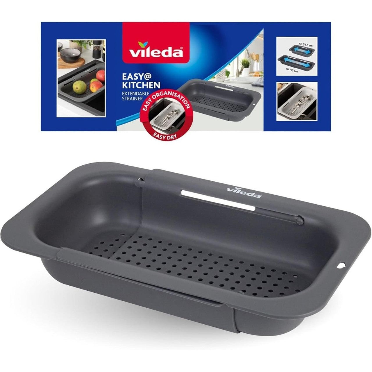 This Vileda sinkside strainer offers a highly practical solution for managing water drainage directly over your sink area. Its clever extending mechanism allows it to fit various kitchen sink dimensions conveniently and securely across different setups. Crafted from durable, stable materials, this accessory ensures reliable service throughout your daily kitchen routines.
