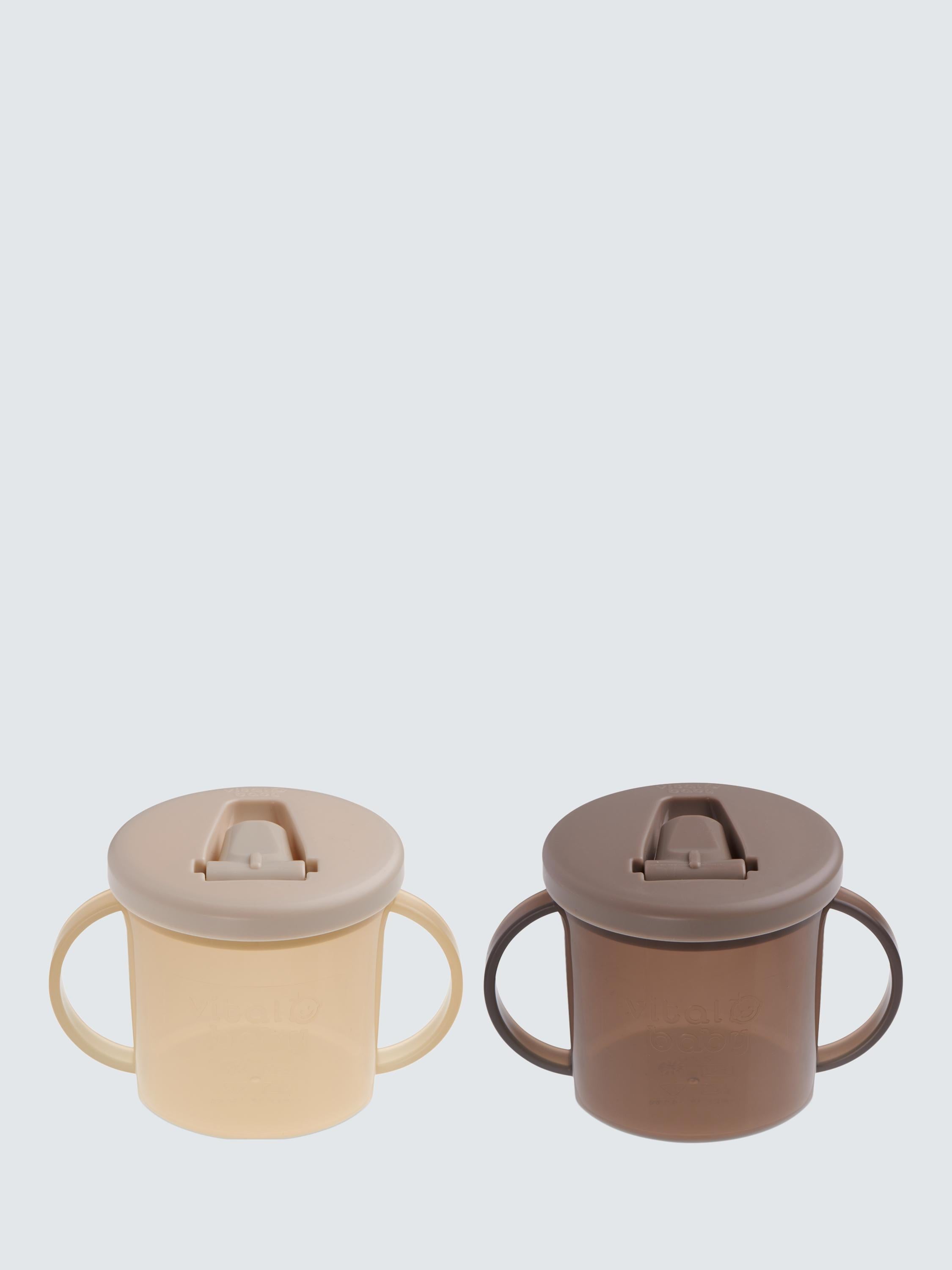 Vital Baby offers this Hydrate Free Flow Cup set, supplying two 200ml units perfect for weaning infants. This multi-pack ensures hydration readiness throughout the day. The cups feature a reliable, non-spill design promoting independence. They are designed for simple handling and quick preparation for busy parents. This essential item supports transitioning babies towards independent drinking.