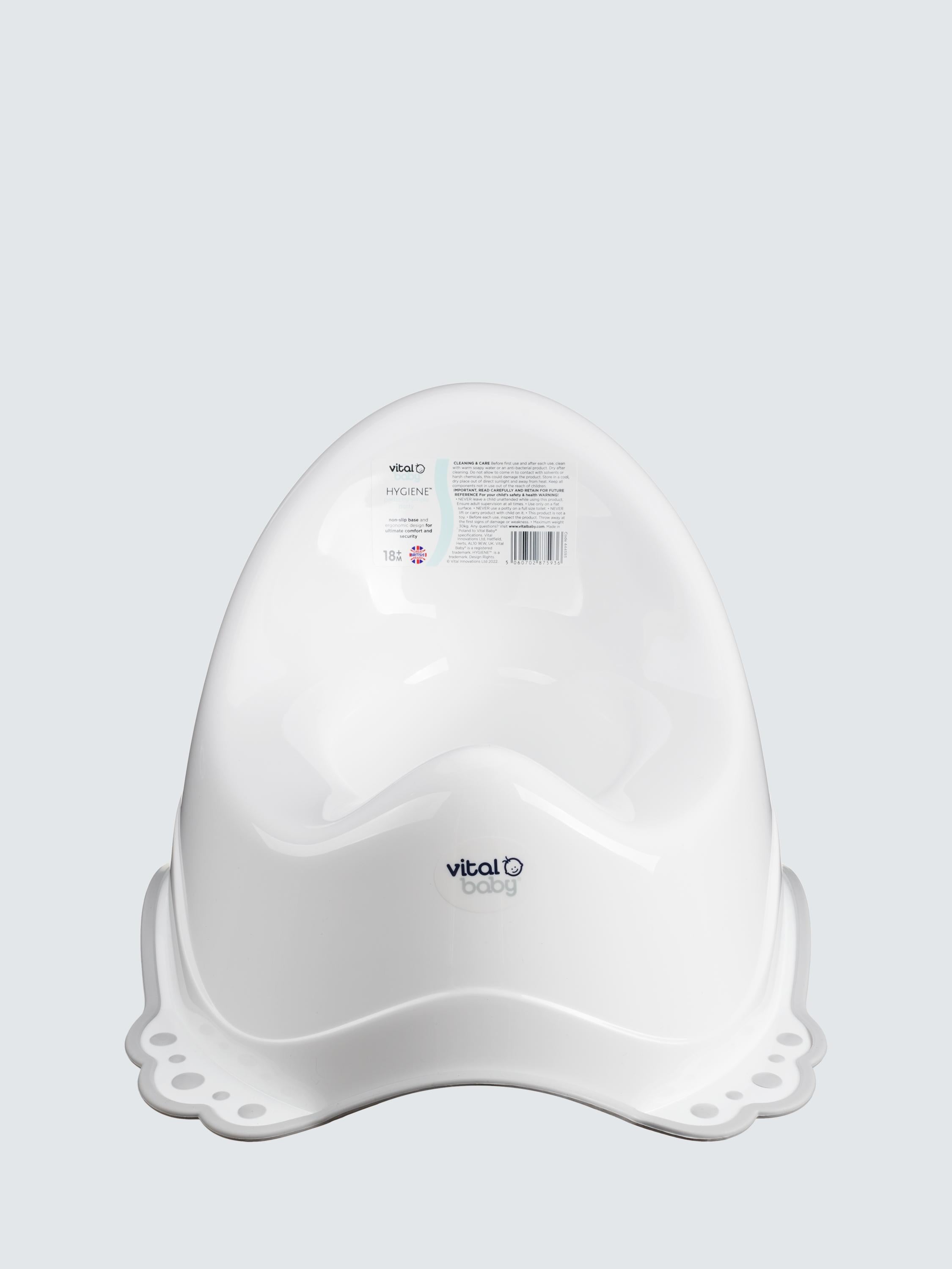 The Vital Baby Hygiene Perfectly Simple Potty assists effective early toilet training for young toddlers and babies. This essential Baby & Child Changing accessory features an ergonomic shape offering superior comfort and stability. Its robust, non-slip base ensures secure use during learning.