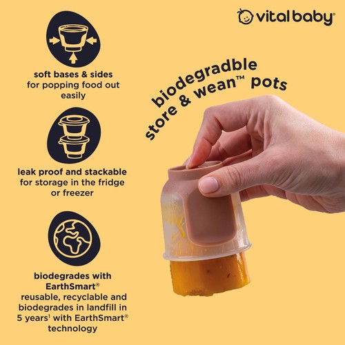 These Vital Baby Nourish pots are perfectly sized for preparing homemade food during weaning or packing snacks for travel. This set of six 60ml containers is ideal for efficient portion control and on-the-go feeding.