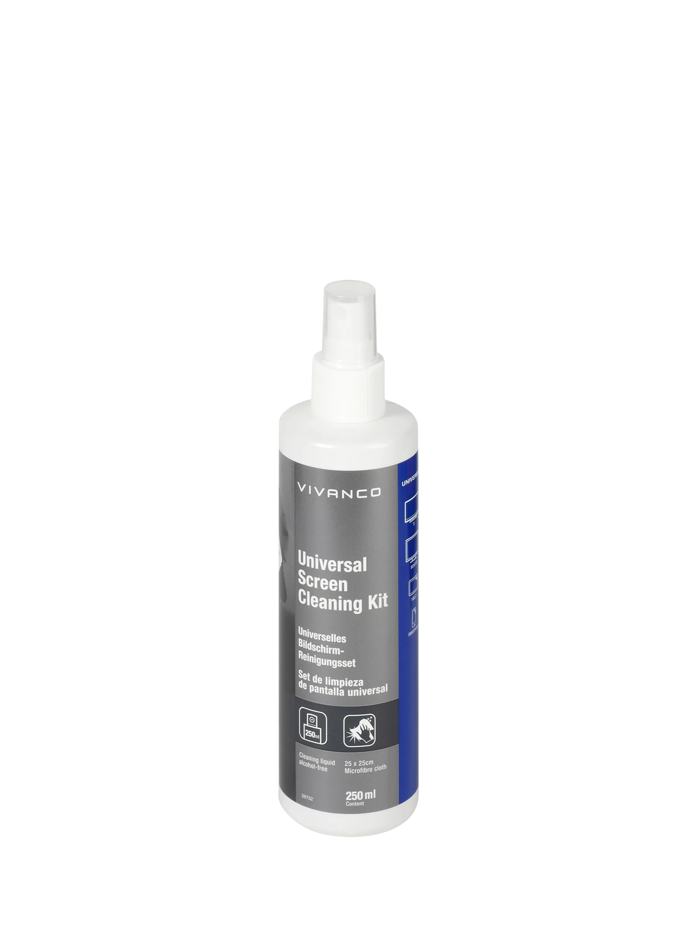 Ideal for keeping all your device screens clean and pristine, this universal kit is good for TVs, computers, tablets, and phones. Alcohol-free, this drip-resistant fluid safely loosens dirt and grime. Includes a 25cm square microfibre cloth.
