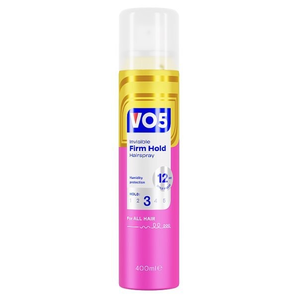 this invisible lightweight hair styling product provides mediumtohigh hold while boosting your hairs volume and shine let vo5 freeze your style and protect your hair and go about your day without a worry our hair mist with uv filter offers 24hour humidity protection to help fight frizz and protects your hair from damaging uv rays enjoy the enhanced shine and sweet coconut fragrance of this anti frizz hair spray that leaves your hair looking and smelling great with no sticky residue how to use shake before use hold approximately 30 cm from hair and spray towards the roots for exceptional lift and body finally mist evenly over hair for that final finish and hold style tip spray a little on to a brush and use to tame flyaway ends vo5 is here for your everyday styling wants and needs as the uks 1 styling brand vo5 has a part to play to give you a better hair day every day if you liked vo5 firm hold hair spray be sure to check out the other vo5 hair styling products in the full range like our hair fibre hair paste or hair putty to remix your style and experiment with your hair even further based on nielsen scantrack total uk excluding ni data for hair styling 12months to 22nd april 2017 copyright 2017 the nielsen company