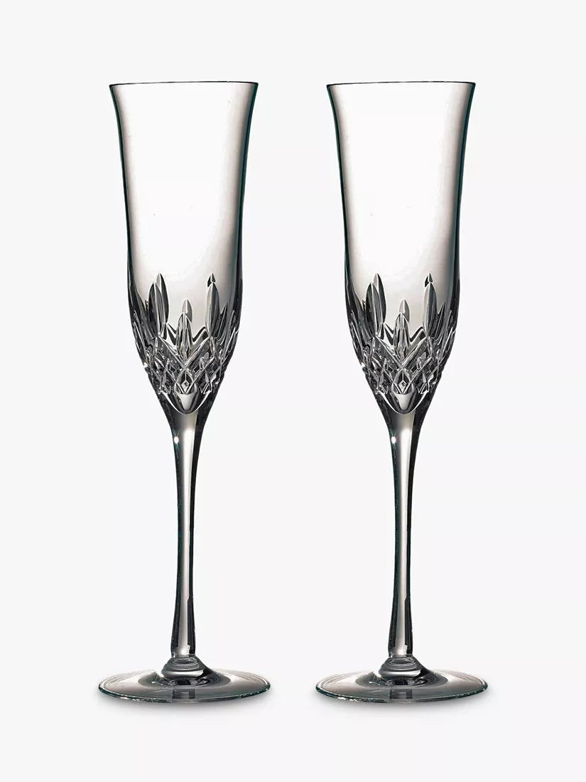 A luxurious way to enjoy champagne, this pair of flutes are from the Lismore Essence collection by Waterford Crystal.