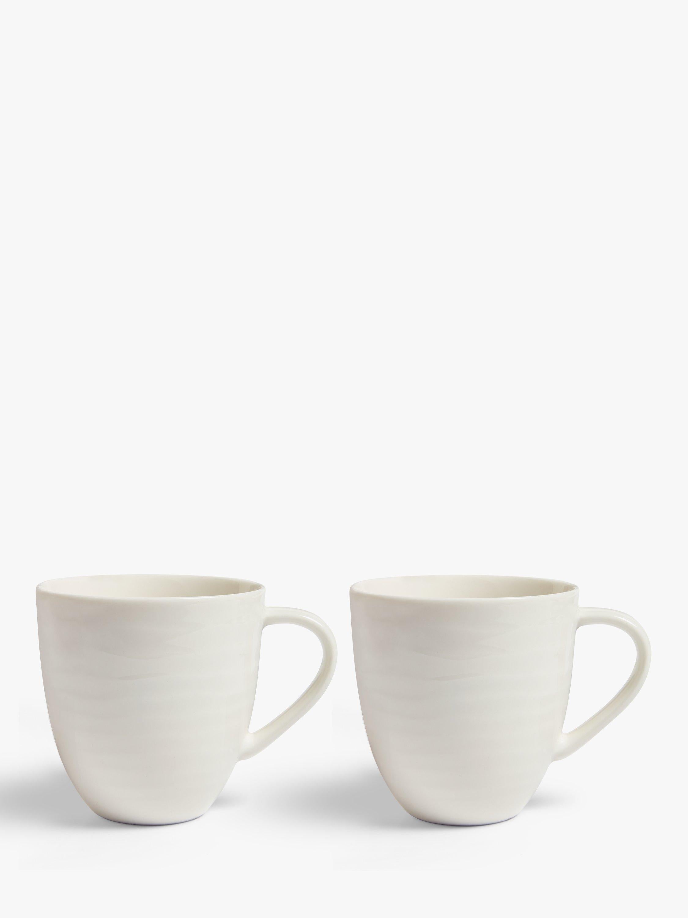 This John Lewis Wave set provides two fine china mugs, each measuring 320ml, perfect for your daily hot drinks. The sophisticated design showcases a pattern inspired by the subtle ripples left on sand by gentle ocean waves. These durable pieces are safe for everyday use in both the dishwasher and microwave.