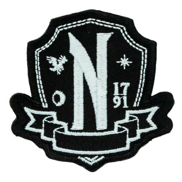 Personalise your apparel or gear using this officially licensed Nevermore Academy Crest iron on patch. This emblem offers a straightforward way to display your allegiance to the academy’s unique style. The patch is sized precisely for visible placement on jackets or bags, adding a touch of specific character flair.
