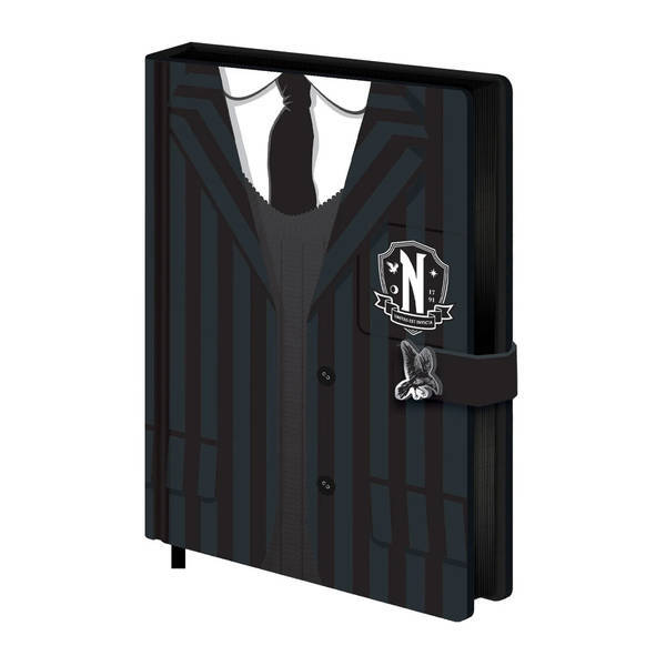 This A5 diary is styled after the uniform and features the Nevermore Academy crest, referencing Wednesday Addams. Measuring 21cm by 15cm, this officially licensed item is suitable for daily notes and planning. It offers a high-quality design for fans of the series.