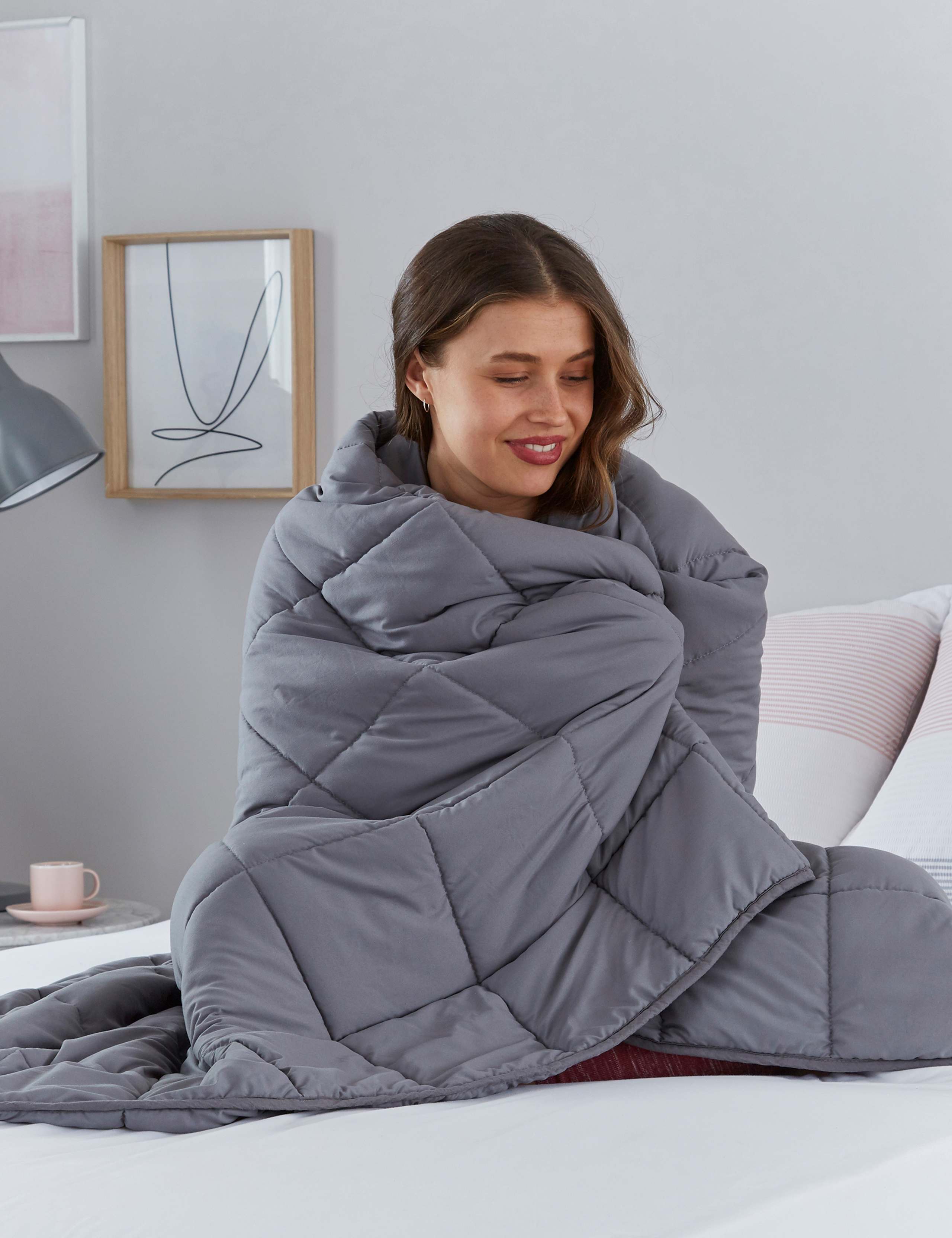 Read MoreGet cosy and relax with this weighted blanket by Silentnight. It weighs 9kg and is filled with tiny beads for a gentle hug sensation that encourages deep and restful sleep. The fabric cover is breathable, offering that extra bit of comfort.