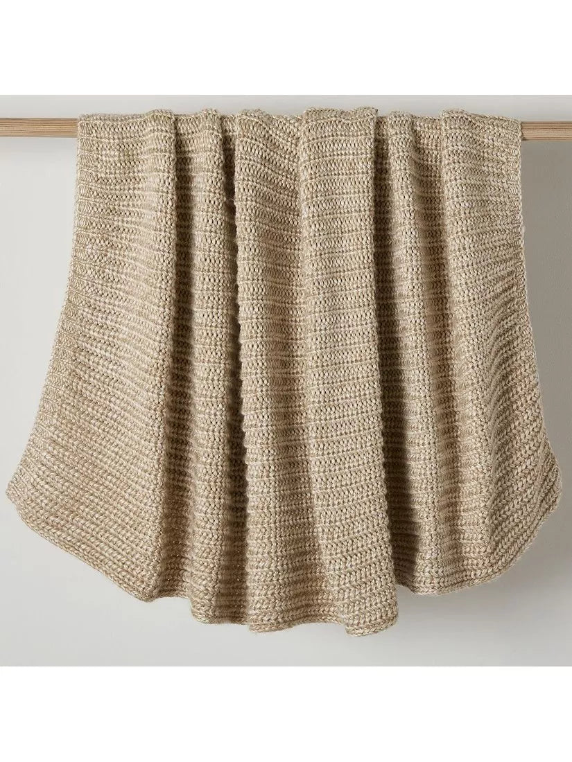 Multi-hued and textural throw with a mix of knits. Cosy ribbed detailing is perfect for snuggling.
