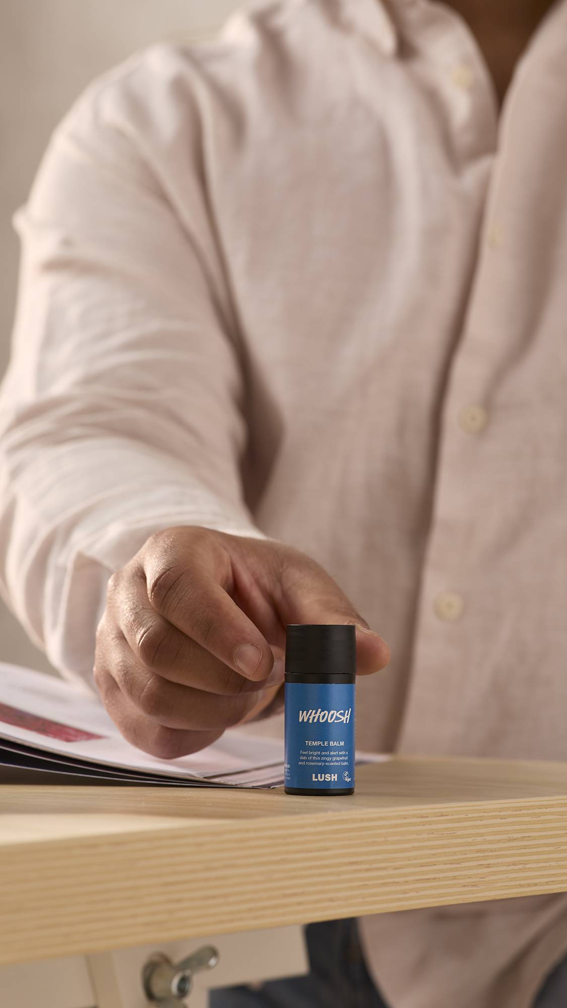 Feel the rush and get bright and alert with a dab of this zingy balm, Whoosh is wonderfully supportive for anyone who feels like they're zooming around. Scented with the sweet, zesty aroma of get-up-and-go grapefruit, as well as revitalising rosemary, this temple balm is perfect for perking up a dull morning.