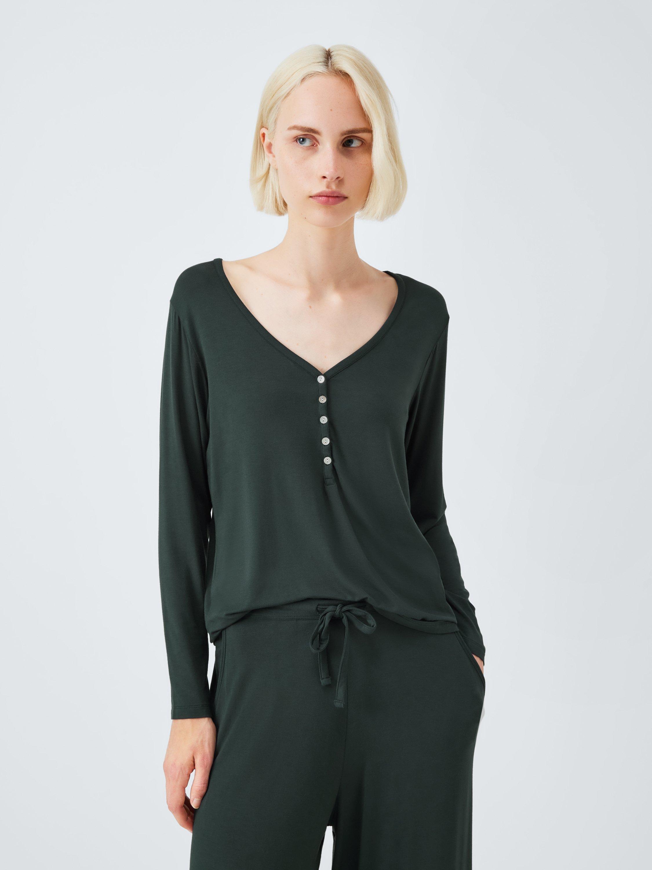 Discover the John Lewis Wide Leg Modal Henley Pyjama Set in the Scarab colour. Crafted from exceptionally lightweight modal fabric, this sleepwear ensures great comfort all night long. The stylish top includes natural shell buttons for detail. Bottoms feature a secure elasticated waist and very practical side pockets for convenience.