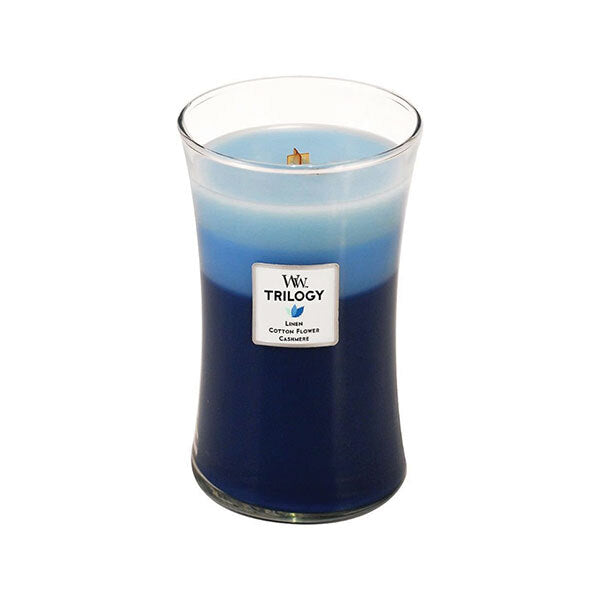 This Woodwick Large Trilogy Candle provides a substantial 22oz size for lasting enjoyment across your home. This candle captures a clean, airy scent profile that replicates the comforting smell of freshly washed linens.