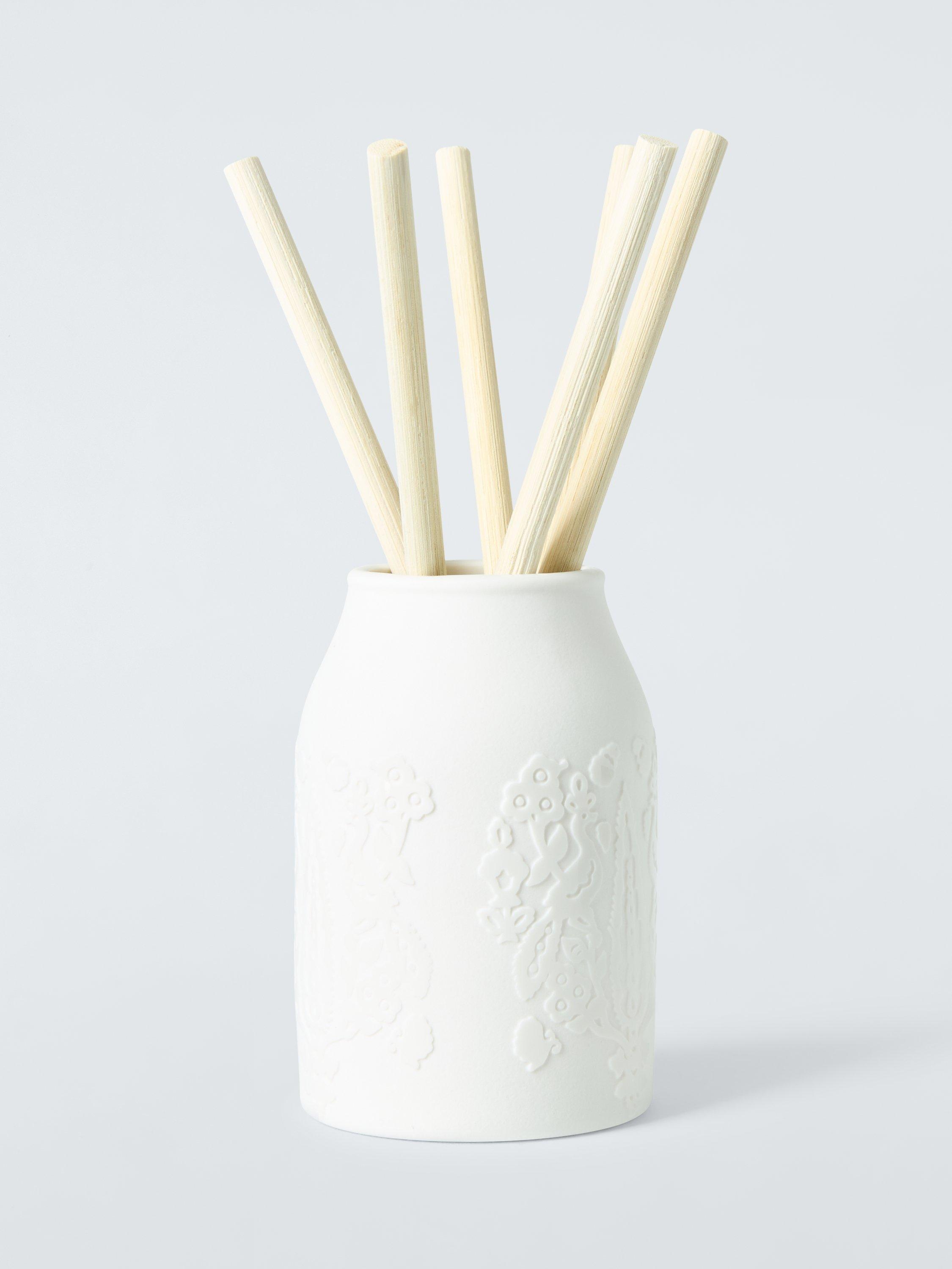 Reviews Summer Garden scented diffuser with etched ceramic jar and 6 natural rattan diffuser reeds. Designed by Sanderson.