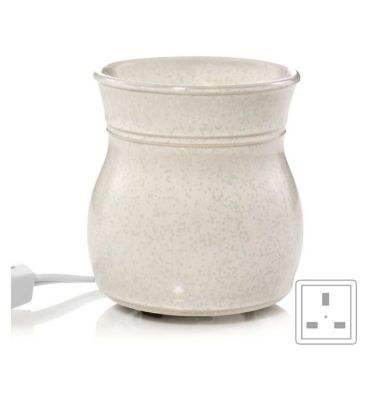 This elegant Kensington warmer showcases a refined, vase-like structure complemented by a distinctive speckled glaze in light pastels. It is designed to integrate well with contemporary décor schemes throughout your home. Simply plug in this unit to instantly enjoy exceptional Yankee Candle fragrance.
