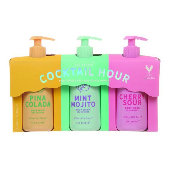 Set includes three cocktail-inspired fragranced body washes 300ml sized bottles Cruelty-free and recyclable packaging Nourishing blend of coconut oil, shea butter, aloe vera, and vitamin E Ideal gift for skin care lovers Treat yourself or a loved one to the Yes Studio Cocktail Hour Body Wash Trio Set—a luxurious gift set designed for those who love to indulge in fruity, refreshing scents while caring for their skin. This set includes three cocktail-inspired fragranced body washes, each carefully formulated with nourishing ingredients like coconut oil, shea butter, aloe vera, and vitamin E. Perfect for any occasion, this cruelty-free body wash trio makes an ideal gift for someone who enjoys pampering their skin. The recyclable packaging adds an eco-friendly touch, making this set a thoughtful and sustainable choice. Each body wash provides a unique fruity-scented experience, leaving skin feeling soft, hydrated, and delicately scented.